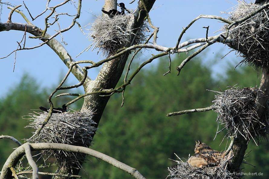 Uhu brütet in Kormorankolonie
