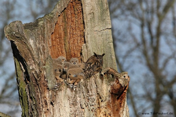 In einer alten, abgebrochener Eiche hat ein Uhu, sowie eine Kanadagans gebrütet.